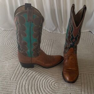 Tony Lama Brown and Teal Heeled Boots