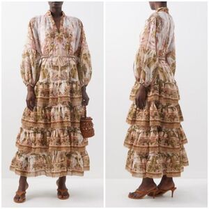 💕ZIMMERMANN💕 Lyre Ruffle Tiered Billow Sleeve Midi Dress ~ Spliced US 6 NWT