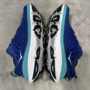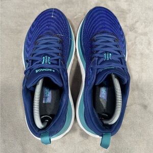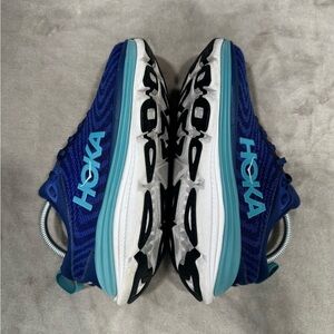 Stylish Hoka sneakers in blue and teal. Comfortable and durable design. Perfect for everyday wear.