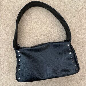 Black Studded Leather Shoulder Bag