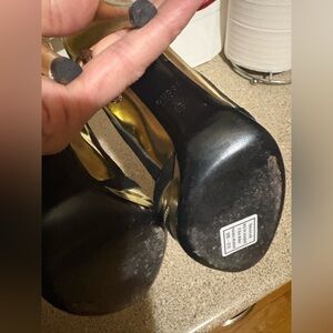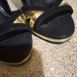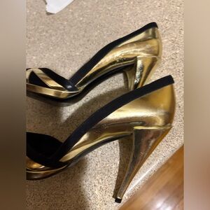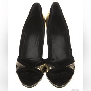 Chic Gucci heels in black and gold. Perfect for a stylish look.