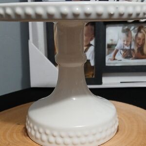 New!! White Ceramic Cake Stand with Beaded Edge / Base NWT