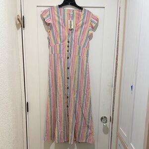 NWT Camila midi dress with stripes. Button-down front and flutter sleeves. Hidden pockets. Stretch panel in back.