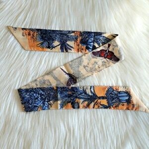 New Palm Print Silk Skinny Scarf Twilly