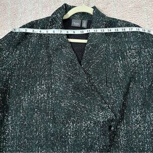 Like new crinkle fabric waterfall front cardigan in speckled black, white, and green.