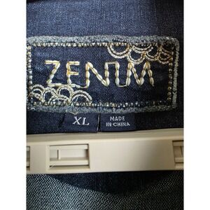 Zenim Denim Jacket Womens XL Blue Dark Wash Peplum Embroidered Contrast Stitch