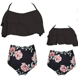 NWT - Mommy and Me Bathing Suit Two Piece Swimming Suit Family Matching Swimsuits Halter Neck Ruffle Bikini Set.