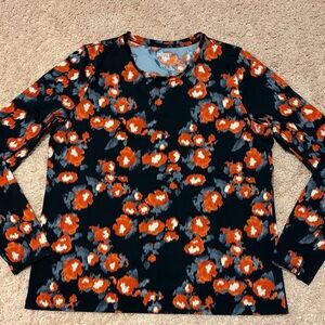 Duluth Trading Co. blk floral athletic long sleeve tee w/thumb holes women’s XL