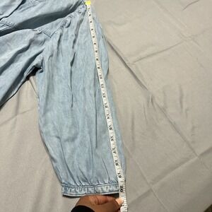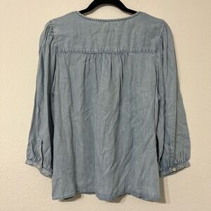 Levi's Chambray Blouse Women Large Light Blue Excellent Puff Sleeve Boho Top