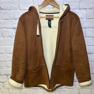 Lauren Ralph Lauren Dry Goods Jacket Sherpa Lined Hooded Coat Brown Women Large