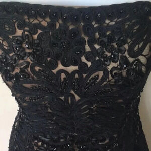 Sue Wong black strapless embellished lace cocktail dress Size 4