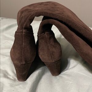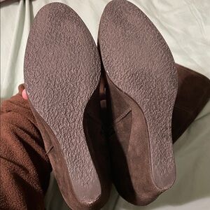 Garnet Hill Vittoria Leather Suede Brown Knee High Wedge Boots Size 7.5
