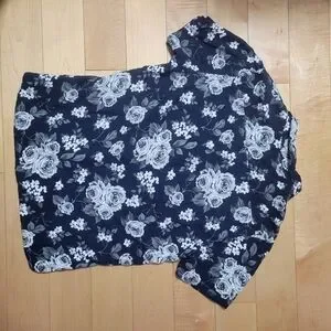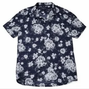 Free Planet short sleeve button-up shirt in excellent used condition. Features a navy blue base with an allover white and gray floral print for a bold yet wearable look. Lightweight and breathable fabric makes this perfect for summer, vacation, festivals, or casual everyday wear. Classic collar with a relaxed, easy fit.
