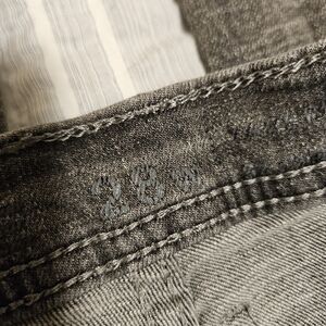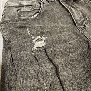 Stylish distressed men's Ninth Hall Lure jeans in a heavily distressed black/gray color. Perfect for casual outings and adding an edgy touch to your wardrobe.