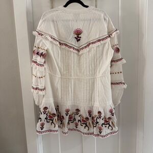 Farm Rio Embroidered Horses Ruffled Mini Dress Off-White Size XL Boho