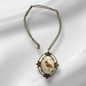 Vintage Hand Painted Bird Pendant Costume Necklace