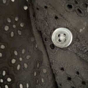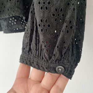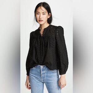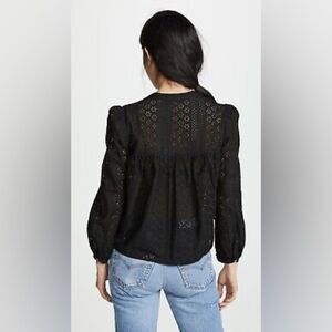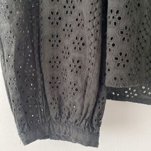 Madewell Black Cotton Eyelets Lace Puff Long Sleeve Blouse Peasant Preppy Boho L