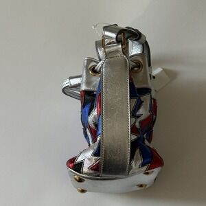 SAINT LAURENT BUCKET BAG PURSE New YSL Yves SILVER RED BLUE LEATHER CROSSBODY