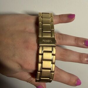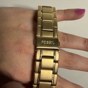 Stylish Fossil watch with a gold-tone finish. Features a chronograph design. Perfect for any occasion.