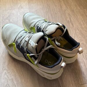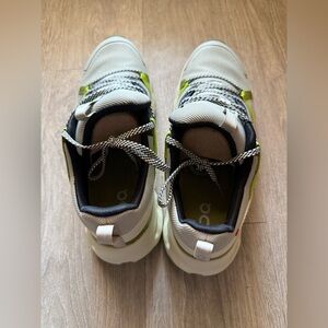 Stylish On Running sneakers featuring green and black accents. Perfect for athletic and casual wear.