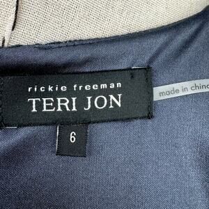 Rickie Freeman Teri Jon Navy Blue Metallic Short Sleeve Round Neck Sheath Dress Womens Size 6