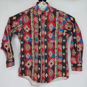 Vintage Wrangler Shirt Mens 16 34 Aztec Southwest Western Rodeo Brushpopper