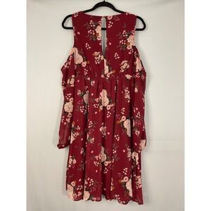 Torrid red floral cold shoulder wrap dress. This elegant dress features a flattering V-neckline, adjustable tie waist for a customizable fit, and flowing cold shoulder long sleeves. The all-over floral print adds a touch of femininity, making it perfect for a garden party, a casual brunch, or a date night.