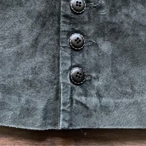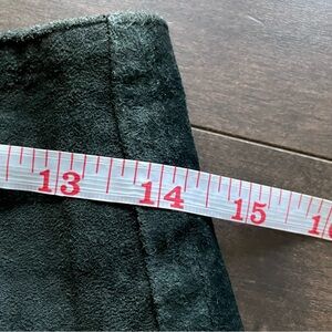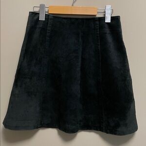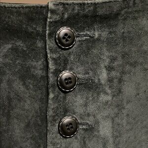 Chic and timeless vintage black suede leather skirt featuring a flattering a-line silouette and full button-front closure. Soft genuine suede leather gives it that classic 70's look with a modern edge - perfect for pairing with turtlenecks, blouses, or your favorite band tee.