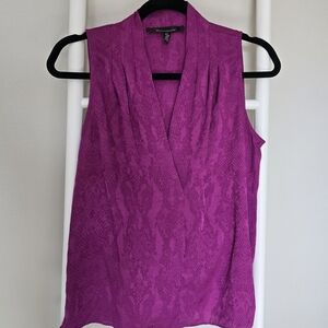 Vibrant fuchsia blouse with a sleeveless design. Perfect for adding a pop of color.