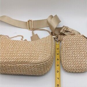 New with tags Urban Expressions straw-style crossbody bag featuring a neutral tan raffia weave and gold-tone hardware. Perfect for spring and summer, vacations, beach days, and everyday casual wear.