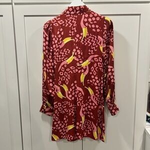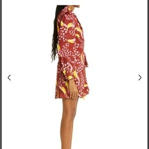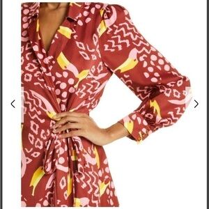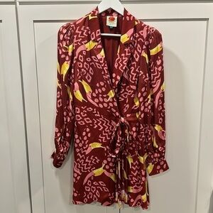 Farm Rio Toucanissimo Long Sleeve Print Beaded Tie Wrap Dress SMALL