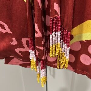 The dress comes in a size small, making it ideal for women who want to show off their curves. The short dress length is perfect for summer, fall, and spring seasons. With its versatile style and beautiful design, this Farm Rio wrap dress is sure to turn heads wherever you go. One string missing beads, please see photos- cannot tell when wearing!