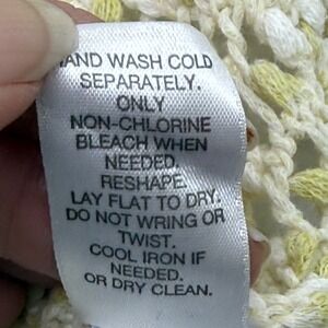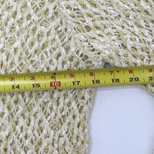 J Jill Womens Open Knit Tunic Sweater Cream Lime Green Cotton V-Neck Size M