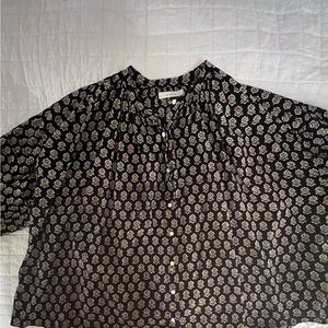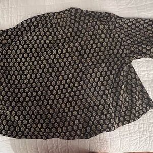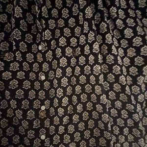 Black with batik print, slightly heavier cotton than plain color Jane shirts. Lovely material and classic Jane fit.