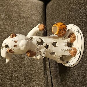🤎🤍Blue Sky Heather Goldminc Ceramic Ghost Bear Figurine with Pumpkin
