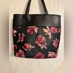Kate Spade Black and Pink Rose Nylon And Leather Floral Tote. Previously Loved