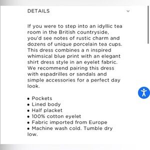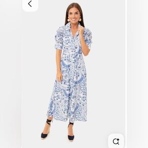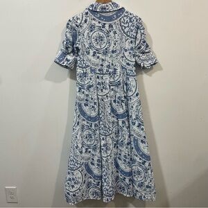 Beautiful Tuckernuck China Blue Porcelain Eyelet Cotton Button Front Midi Dress Size S