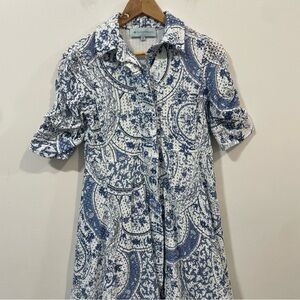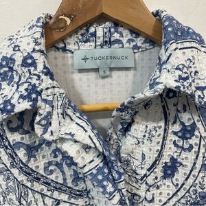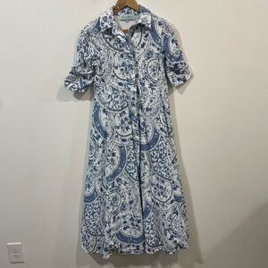 Tuckernuck China Blue Porcelain Eyelet Cotton Button Front Midi Dress Size S