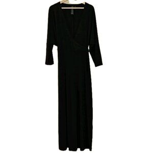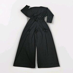 Norma Kamali Jumpsuit Women L / 40 Black Dolman LS Wrap Front Tie Waist Wide Leg