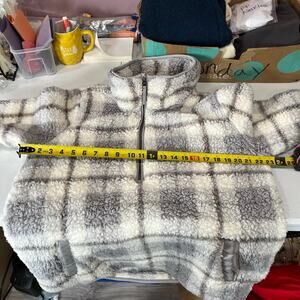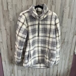 Abercombie Soft A&F Gray Plaid Sherpa Quarter Zip Pullover XL Cozy Cabincore