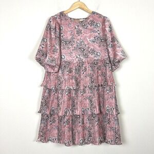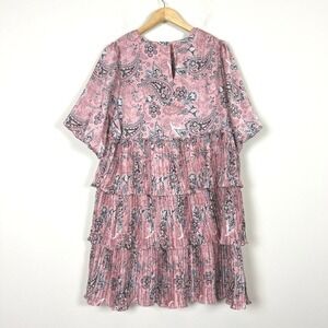 2/$30 Anthropologie Layered Tiered Pink Paisley Chiffon Melloday Dress XL