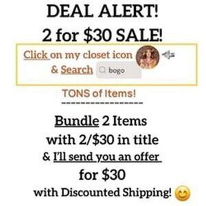 BUNDLE ANY 2/$30 IN MY CLOSET and I'LL SEND YOU A $30 OFFER with DISCOUNTED SHIPPING