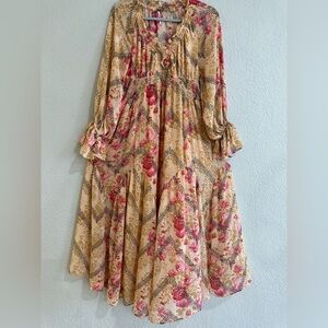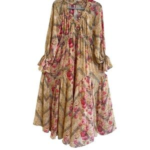 Free People Multicolor Floral Boho Maxi Dress Smocked Waist XS