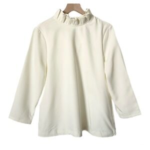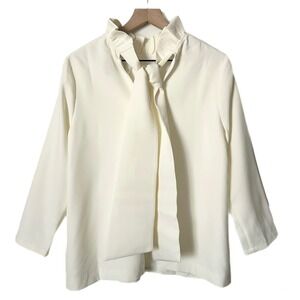 Tuckernuck Ivory White Faye Blouse Ruffle Mock Neck Back Tie Size Medium