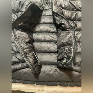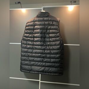Two secure handwarmer pockets have vislon zippers and garages; internal zippered chest pocket self-stuffs and has a carabiner clip-in loop
