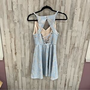 Speechless Blue Lace Overlay Open Back Party Dress