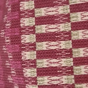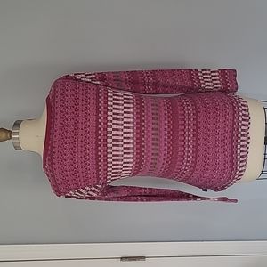 Stylish pink long sleeve top. Features intricate patterns. Comfortable and chic.
