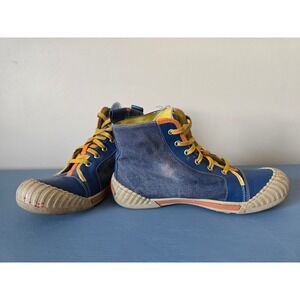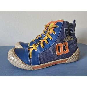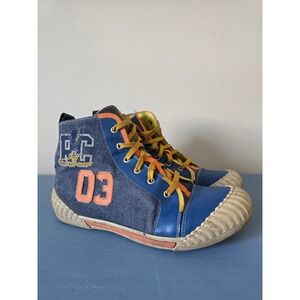 Authentic Roberto Cavalli high-top sneakers in a bold blue colorway with signature RC 03 detailing,