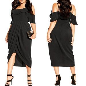 City Chic Black Flirtation Drape Midi Dress Size 16