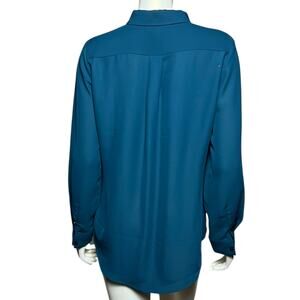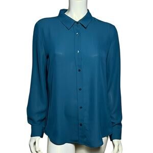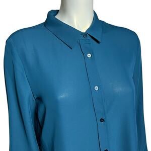 Laundry by Shelli Segal Teal Blue Long Sleeve Button Down Blouse Size M
